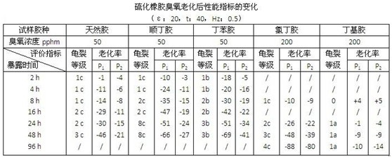 試驗結(jié)果是根據(jù)評價指標所觀測的數(shù)據(jù)來表示的。硫化橡膠臭氧老化的評價指標有多種,常用而簡便的多采用直接觀測法。主要是通過顯微鏡、放大鏡或肉眼直接觀測發(fā)生在試樣表面的臭氧龜裂,例如記錄裂紋首先出現(xiàn)的時間,或裂紋剛斷裂的時間。又如觀測試樣龜裂的特征和狀況,記錄龜裂的寬度和密度,從而評定試樣龜裂程度和等級。評價龜裂的等級,可以參照GB11206《硫化橡膠老化表面龜裂試驗方法》第10.3條的規(guī)定進行。該標準將試樣表面的龜裂寬度分為1至4級,龜裂密度分為a、b和c級,兩者組合起來就表示其龜裂等級。試驗結(jié)果也可用硫化橡膠的實用性能,如測試試樣老化前后的拉伸性能變化率來表示。由于硫化橡膠受臭氧老化后,結(jié)構(gòu)遭到破壞,分子鏈斷裂,表面形成裂紋,導致其拉伸性能發(fā)生變化。隨著老化的深入發(fā)展,表面龜裂也在增長深化,使其拉伸性能如拉伸強度、扯斷伸長率等逐漸變差變劣,從而間接也評價出該硫化橡膠耐臭氧老化性能的好壞。下表是幾種硫化橡膠試樣在臭氧老化試驗箱內(nèi)經(jīng)不同的時間暴露后生成的臭氧龜裂等級與拉伸強度和扯斷伸長率(老化率)相應變化的試驗結(jié)果。從表中可看出,試樣的龜裂變化與拉伸性能的變化有一定的相互關(guān)系,在各自的范圍內(nèi)都可以反映出試樣的耐臭氧老化性能,故它們都可以作為評價的指標。因此,臭氧老化試驗箱GB/T13642-1992標準除了采用試樣出裂時間和龜裂等級表示試驗結(jié)果外,補充了可以采用試樣斷裂時間和老化性能變化率(老化率)來表示試驗結(jié)果。